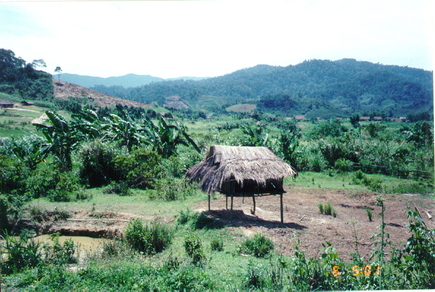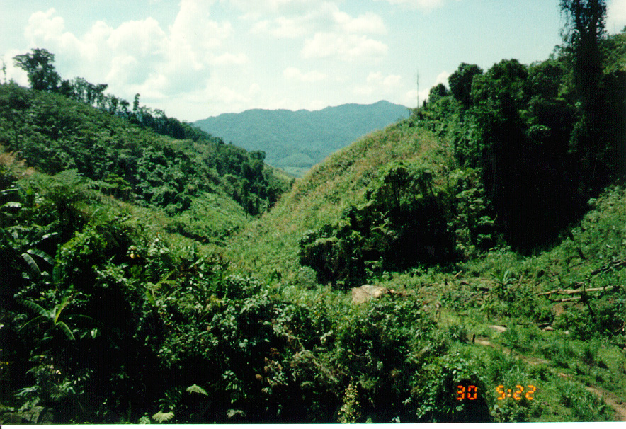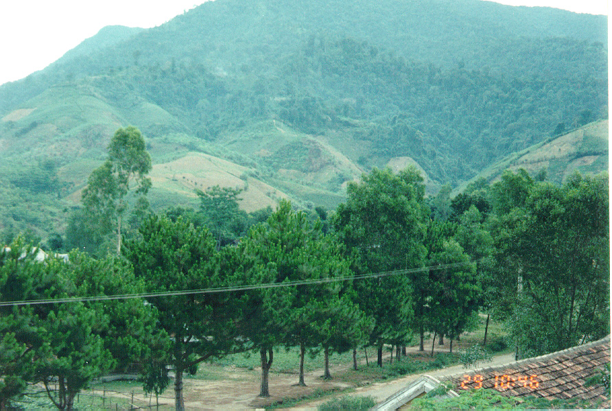 WE STARTED OFF IN A LOUI, A SMALL TOWN IN THE A SHAU. STANDING FROM THE SO-CALLED HOTEL, I TOOK A FEW PICTURES OF THE MOUNTAINS. YOU CAN SEE A GOOD EXAMPLE OF THE SLASH AND BURN FARMING THEY DO ON THE MOUNTAIN SIDES.