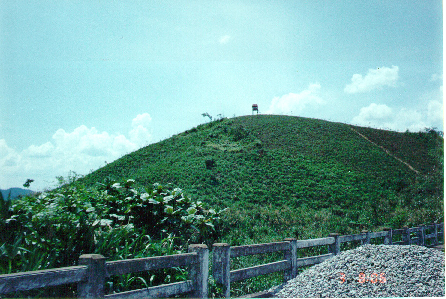 ON OUR DRIVE OUT TO THE SITE, I TOOK A PICTURE OF THIS MOUNTAIN SIDE SHOWING WHERE APPARENTLY A BOMB HIT IT.