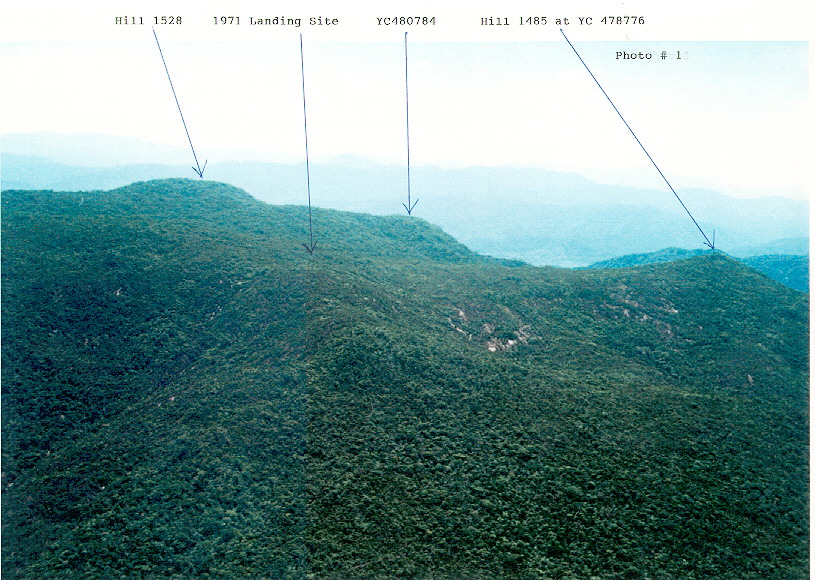 A copy of a color photo showing the area of the Laos-VN border where the Huey was shot down.