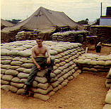 .... Yesterday I went down to Quang Tri (said like tree) to see the area where we're going to move. It looks pretty decent, but I wouldn't exactly call them "cabins." They're only plywood buildings the same size as this tent. As far as being safe from artillery, yes because we're farther from the DMZ. There aren't any trenches yet, but there will be as soon as we get there. The only thing I don't like is that we're pretty far from everything else, but that may be a blessing because the airfield is a long way off; and that's what they usually shoot for.....
