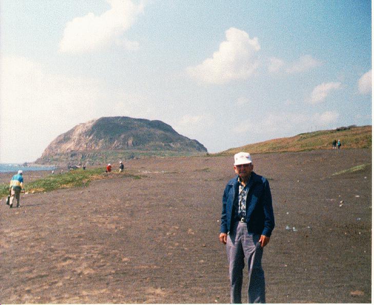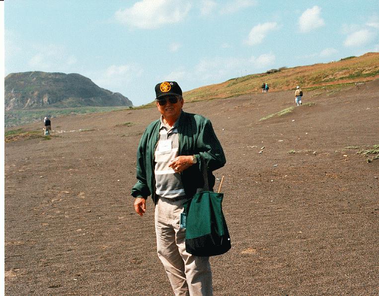 Jim Compton with Mount Suribachi in the background