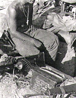 "This photograph was taken while on ambush. In this case, it was more of a rest than a threat to the enemy. We were bunched too close together, and guys were falling asleep."