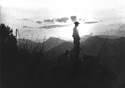 "We were resting on this burning hillside (mountaintop). There must have been napalm or white phosphorus bombardment not long before we arrived. It was surreal, like being on another planet."