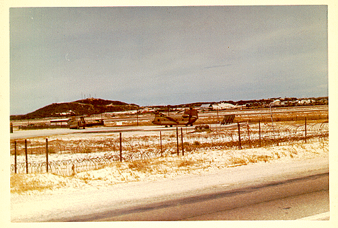 There are a couple of CH-47 "Chinook" helicopters on the strip. This strip was located near Cam Ranh Bay.
