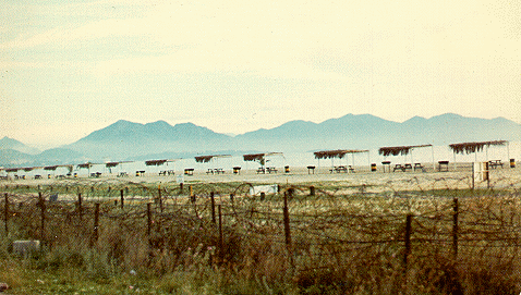She is putting out our daily laundry to dry in the sun. The living quarters in the background are typical for our base area in Nha Trang. Notice also, the sandbagged bunkers.
